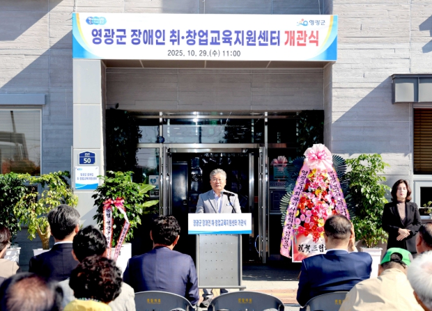[나이스데이]영광군은 지난 29일 오전 11시, 장애인복지타운 광장에서 장세일 군수, 도‧군의원, 장애인단체장 및 회원 등 100여 명이 참석한 가운데 ‘영광군 장애인 취·창업 교육지원센터’ 개관식을 개최했다.