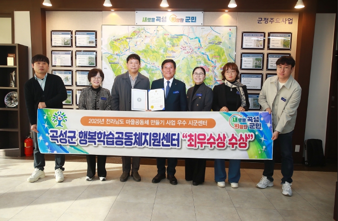[나이스데이]전남 곡성군은 지난 10월 31일 개최된 ‘2025년 전라남도 마을공동체 한마당 행사’에서 곡성군 행복학습공동체지원센터가 전라남도 마을공동체 시군 우수센터 분야에서 최우수상을 받았다고 4일 밝혔다.