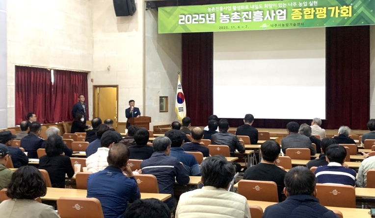 나주시는 6일 농업기술센터 대강당에서 ‘2025년 농촌진흥사업 종합평가회’를 열고 올해 추진한 농촌진흥사업의 주요 성과를 공유하고 향후 발전 방향을 모색했다.