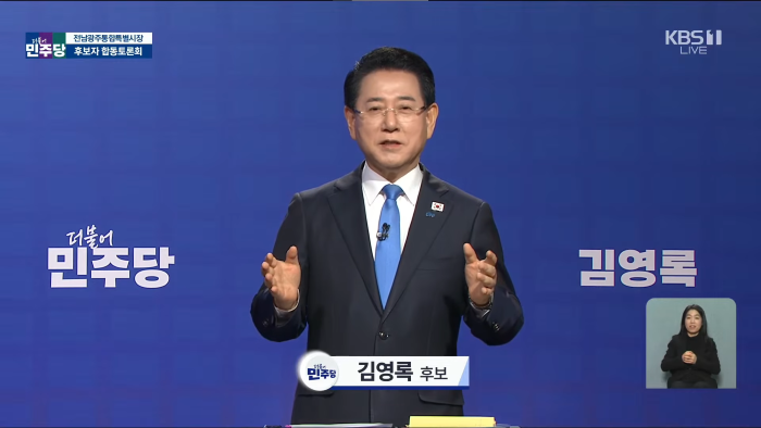 김영록 민주당 전남광주특별시장 예비후보는 31일 오후 광주 KBS에서 열린 민주당 합동토론회에서, ‘역사적 출범을 앞둔 전남광주특별시가 갈등과 분열이 아닌 포용과 통합의 시대로 나아갈 수 있도록 하는 특별시장의 최적임자’임을 각인시키는 데 주력했다.