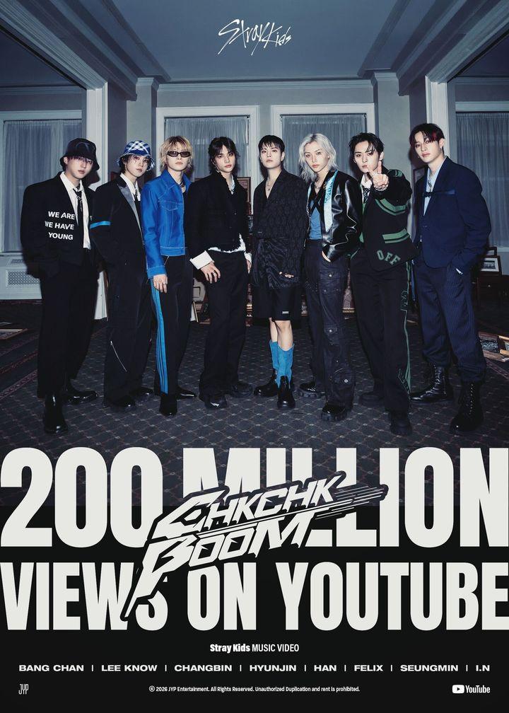 이로써 스트레이 키즈는 '신메뉴', '백 도어, '소리꾼', '매니악', '특', '락(樂)', '케이스(CASE) 143'에 이어 이번 '칙칙붐'까지 총 8편의 뮤직비디오를 2억 뷰 반열에 올렸다.
