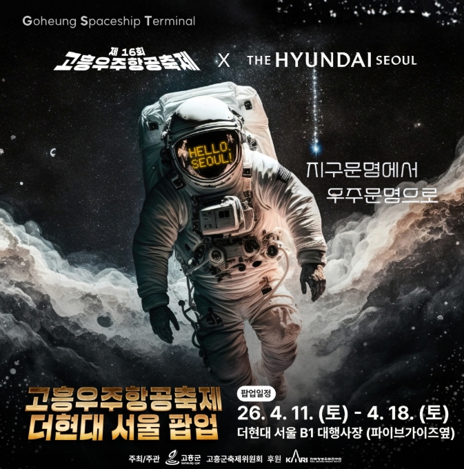 [나이스데이] 고흥군은 오는 4월 11일부터 18일까지 서울 여의도에 위치한 더현대 서울에서 ‘고흥우주항공축제 팝업스토어’를 개최한다고 밝혔다.