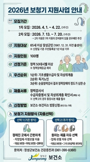 장성군이 65세 이상 난청 주민의 보청기 구입을 지원한다.