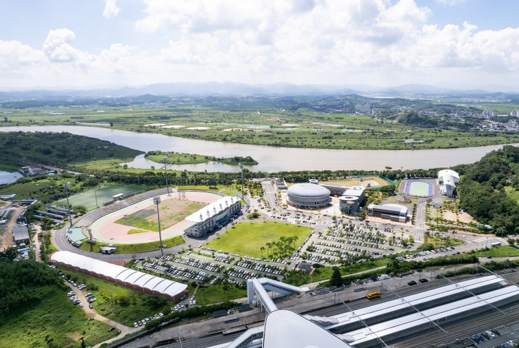 국내에서 유일하게 KTX·SRT 나주역과 연결돼 최고의 교통 인프라를 보유한 나주종합스포츠파크. 영산강변에 위치해 빼어난 풍광을 자랑한다.