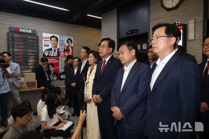 정점식 사무총장은 "일부 언론에서 기조국에 대한 압수수색이라고 보도했는데 그건 아니다"라며 "현재 압수수색 영장은 당원명부에 관한 것"이라고 설명했다.