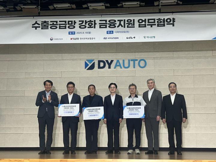 협약식에서 김 장관은 방문업체인 디와이오토사 임연찬 대표에게 '수출공급망강화보증 1호 보증서'를 전달했다. 디와이오토사는 이번 보증으로 200억원 규모의 자금을 확보, 원활한 원자재 수급과 수주 확대에 나설 계획이다.