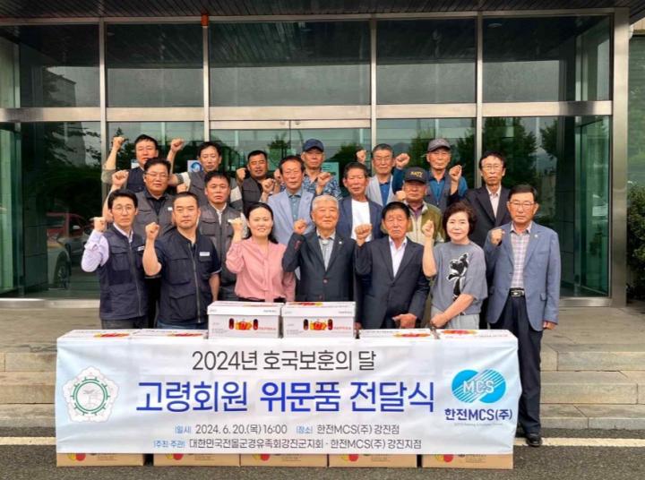 대한민국 전몰군경유족회 강진군지회와 한전MCS(주) 강진지점은 지난 해 6월 보훈 취약계층 물품 지원 및 위로등에 협력할 것을 약속하는 협약식을 갖고 위문품을 전달했으며 이번 행사를 통해 국가유공자의 예우에 더욱 앞장서겠다는 포부를 밝혔다.