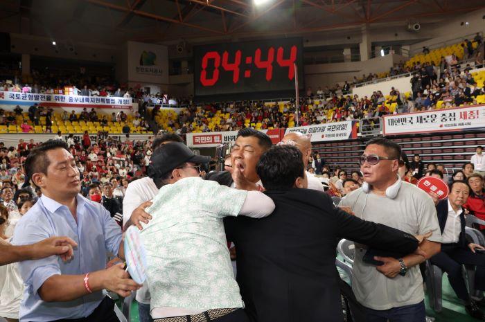 한 후보 측은 "폭력을 휘둘렀는데 그 경위를 당 차원에서 조사하고, 만약 진상 규명에 한계가 있으면 경찰에 수사 의뢰를 해야 한다"며 "명백한 현행법 위반이고 폭력 행위인데 '좋은 게 좋은 거다' 할 수는 없는 것"이라고 했다.