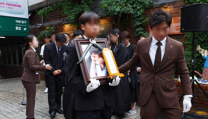 24일 오전 8시 종로구 서울대학교병원에서 발인식이 엄수됐다. 고인의 영정은 서울대학교병원에서 인근 대학로 아르코꿈밭(옛 학전 자리)으로 이동해 극장 내부 그리고 마당을 둘러봤다.