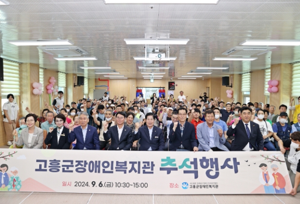 [나이스데이]고흥군은 지난 6일 장애인복지관에서 추석을 맞아 장애인복지관 이용자와 장애인 가족, 자원봉사자 등 160여 명이 함께하는 ‘2024 추석 행사’를 개최했다고 밝혔다.