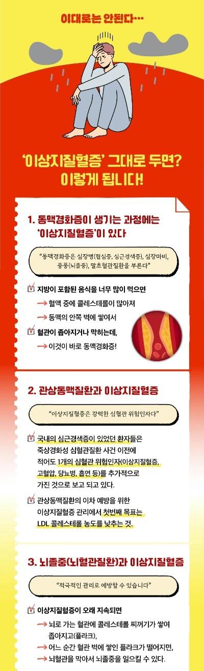 한편, 한국지질·동맥경화학회와 한국헬시에이징학회는 공동 제작한 '3대 만성질환 첫 진단자'를 위한 인포그래픽 3편 중 2편을 공개했다.