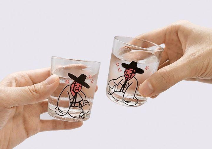 지난 2023년 하반기 정기 공모를 통해 선정된 이 상품은 조선시대 화가 김홍도의 '평안감사향연도' 속 취객 선비를 모티브로 개발됐다. 온도에 따라 색이 변하는 특수 안료를 사용해, 잔에 차가운 음료를 부으면 잔 겉면에 그려진 선비의 얼굴이 빨개지는 것이 특징이다.